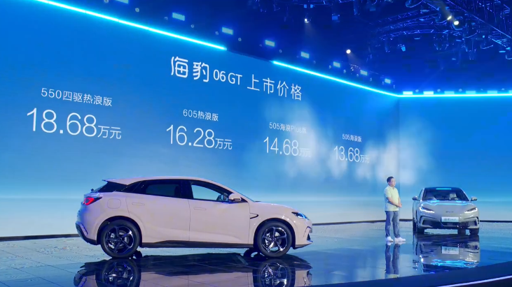 比亚迪海豹 06 GT 于去年 10 月上市,推出 4 款不同配置,售价区间为 13.68 万-18.68 万元,提供两驱、四驱车型。