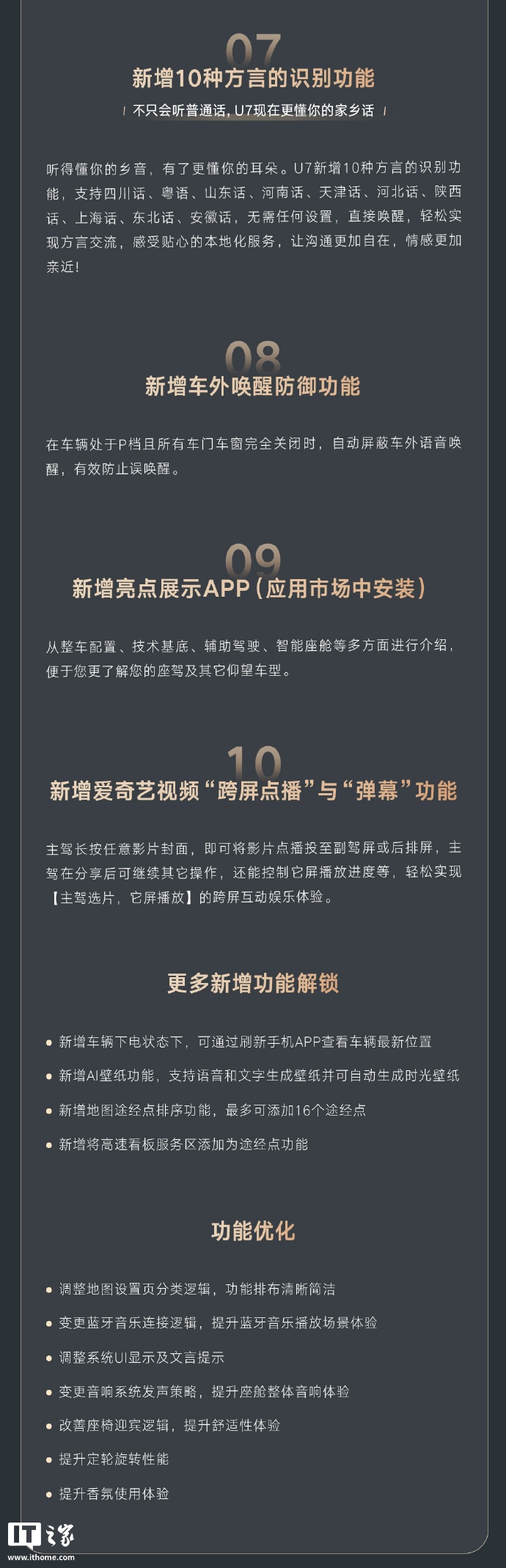 IT之家 8 月 28 日消息,比亚迪今天为仰望 U7 汽车 OTA 推送了 V1.2.0 更新,主要新增了解闭锁迎宾、摇篮模拟等趣味功能,并补充了 AI 歌单、多车畅聊等实用功能。