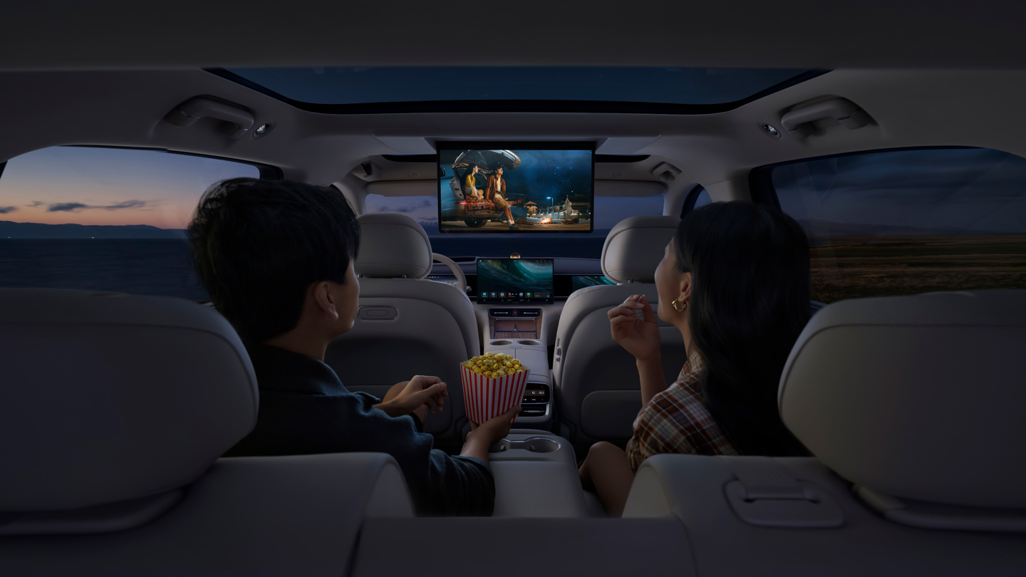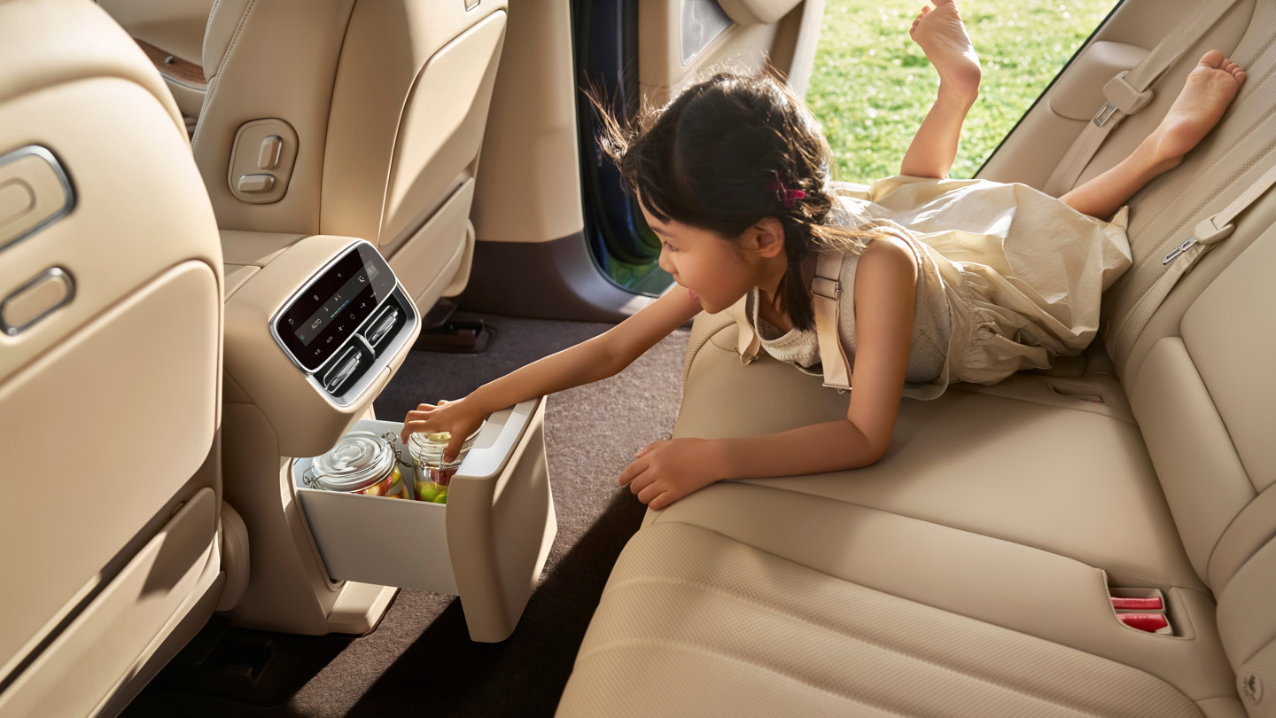 具体配置上,新车主驾配备零重力座椅,还可联动方向盘电动调节;后排配备翻折式娱乐屏,官方透露支持多种控制方式。同时,新车在前排中央扶手最后方配备了车载冷暖箱,可以说新车实现了“冰箱彩电大沙发”一应俱全。