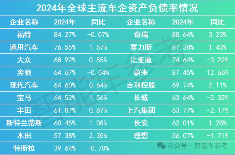 乍一看很吓人,但比亚迪的体量是其他自主车企都比不了的,况且这个负债率在全球车企中就是个平均水平: