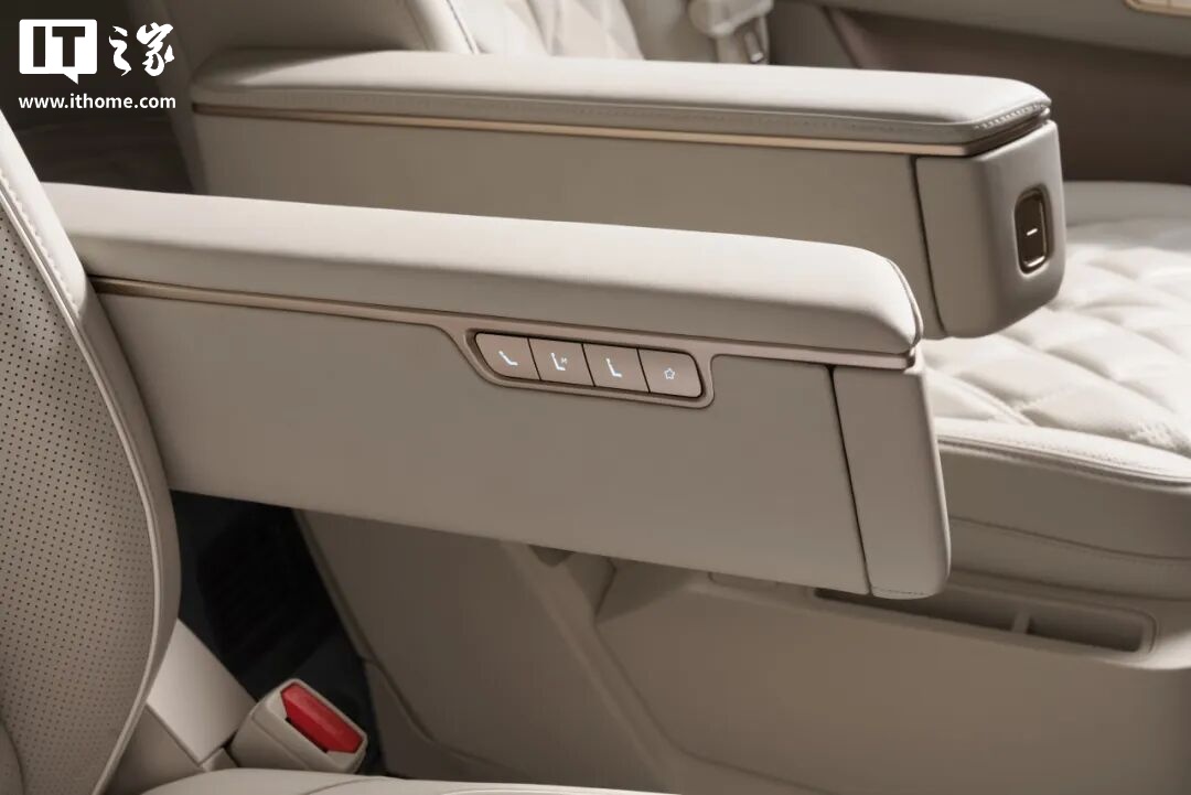 是的,二排右侧座椅的扶手采用了电动调节设计,这其实是为了带来更好的使用体验。比如,当座椅横滑到中间位置时,扶手会自动升起,既方便乘客使用,也避免在横滑到最右侧时和门板发生干涉。