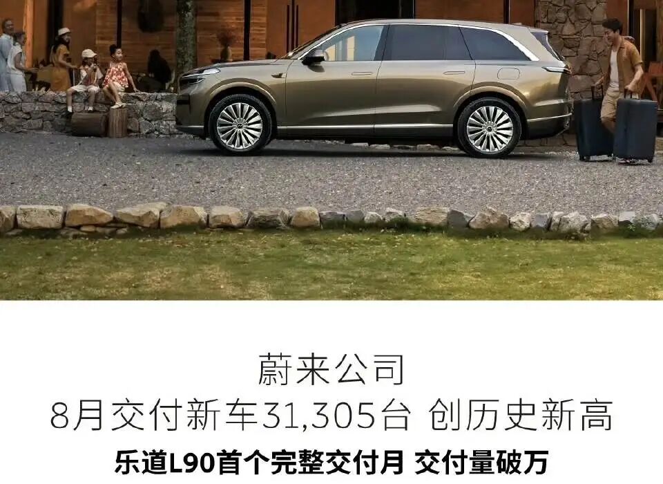 意气风发的蔚来,经过了乐道L90首个完整交付月,终于迈入月销3万+的阵营,8月份交付新车31305台,同比增长55.2%,达到历史新高。