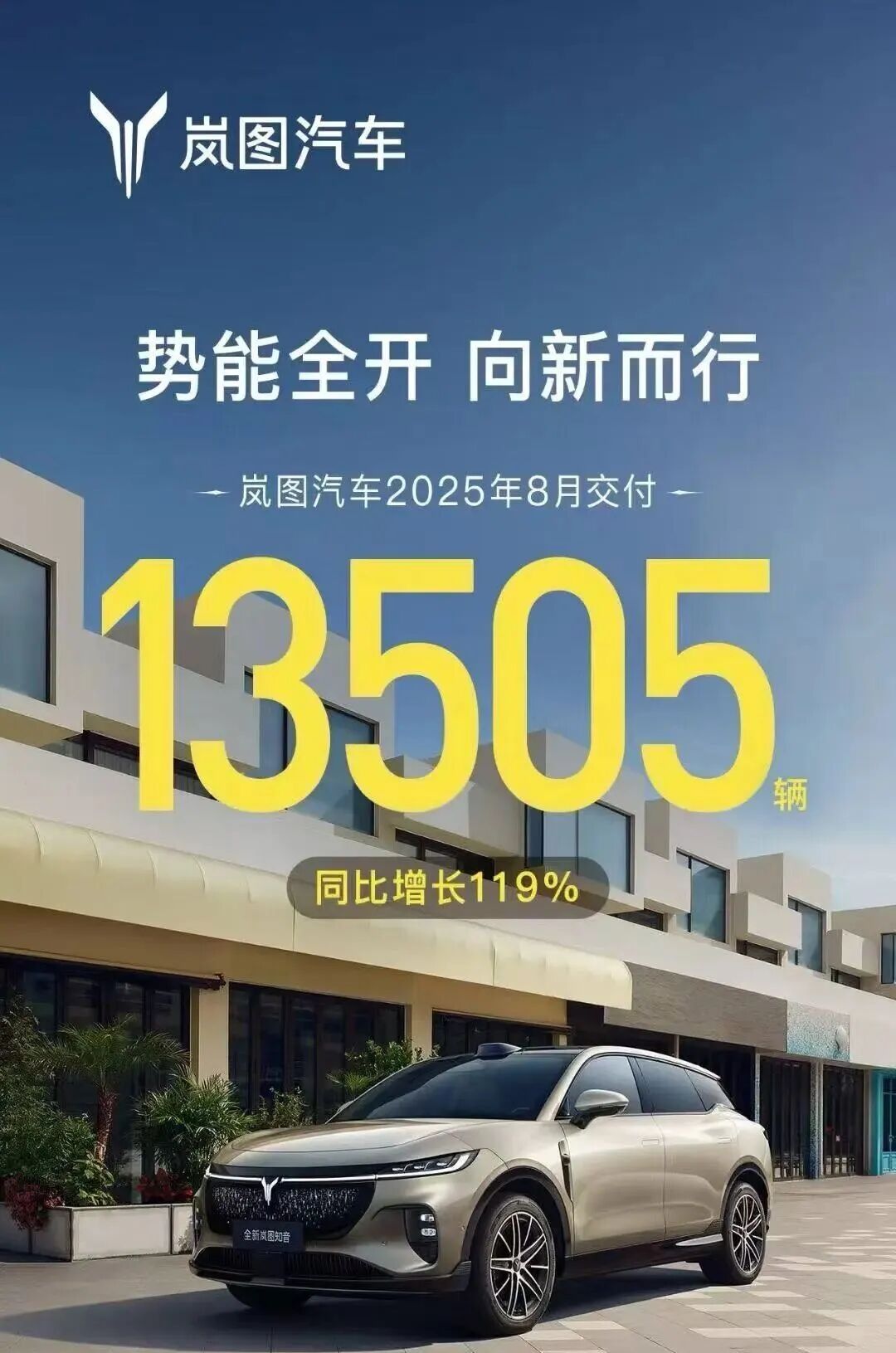 岚图汽车8月交付13505辆,同比增长119%。岚图追光、梦想家等车型在高端纯电和混动市场持续渗透。