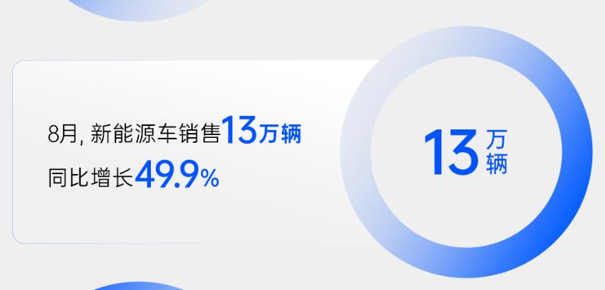奇瑞集团8月份销售汽车242736辆,同比增长14.6%。其中,奇瑞集团销售新能源汽车71218辆,同比增长53.1%。今年1-8月新能源累计销量35.94万辆,同比增长98.6%