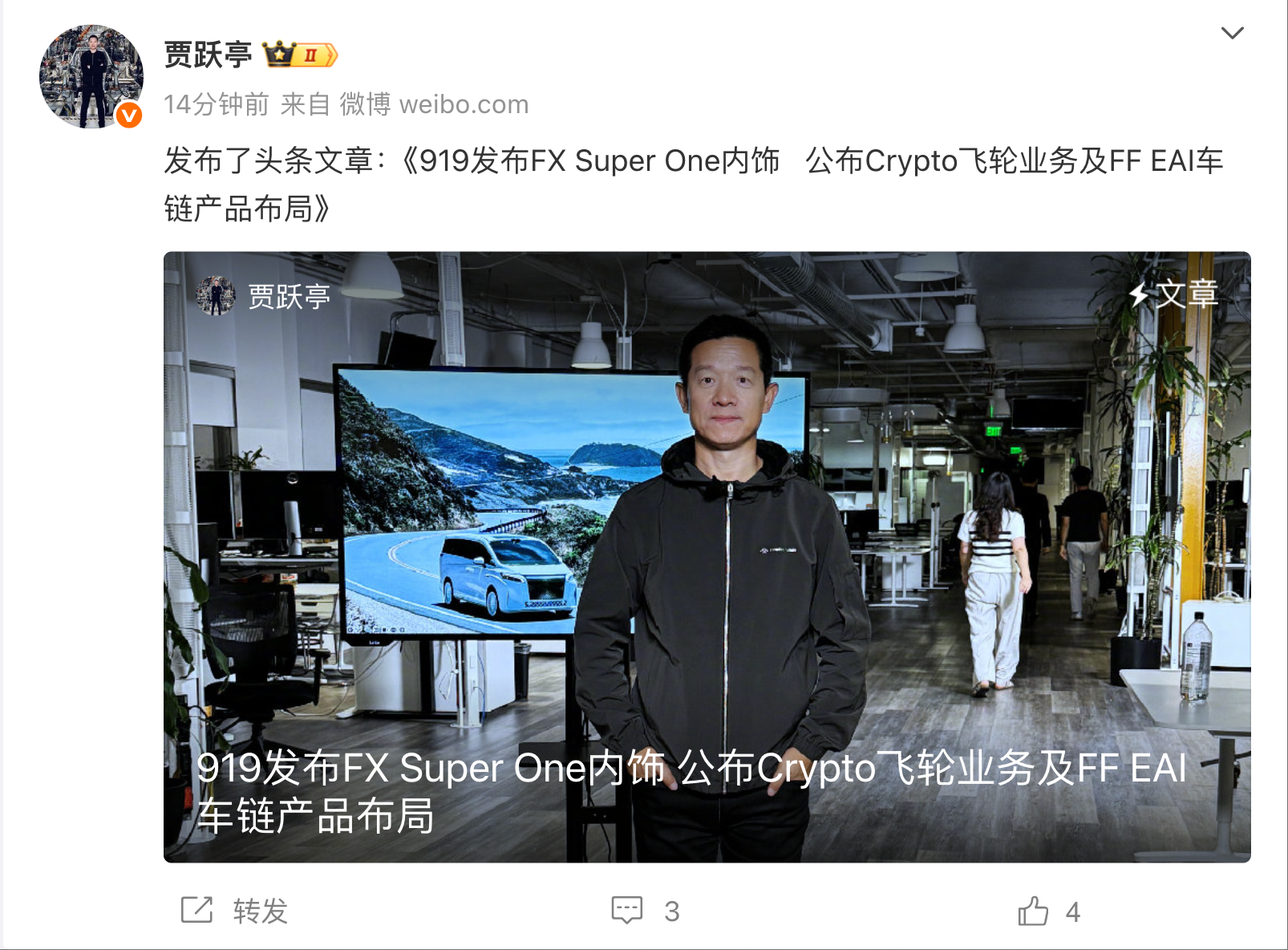 凤凰网科技讯 9月8日,法拉第未来创始人兼全球Co-CEO贾跃亭宣布,将在总部举行的“919未来主义者日暨股东社区日”上,发布FX Super One尚未公布的某些内饰及产品亮点,到场股东和未来主义者们还将有机会抢先体验这些亮点,并深入了解FX Super One美国测试进展,中东终极发布及交付计划细节。
