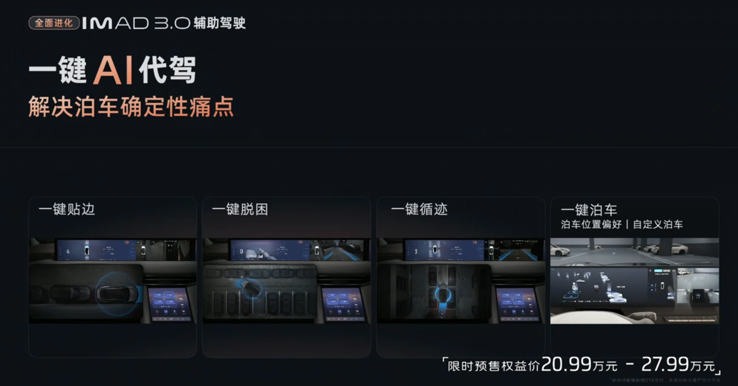 新一代智己 LS6 搭载 IMAD3.0 辅助驾驶系统,无图城市 NOA 全国都能用。一键 AI 代驾功能解决泊车确定性痛点。IMAD3.0 辅助驾驶系统还拥有高速域全场景 AEB。新一代智己 LS6 搭载英伟达 Thor 驾驶辅助方案,配备 520 线超级激光雷达。