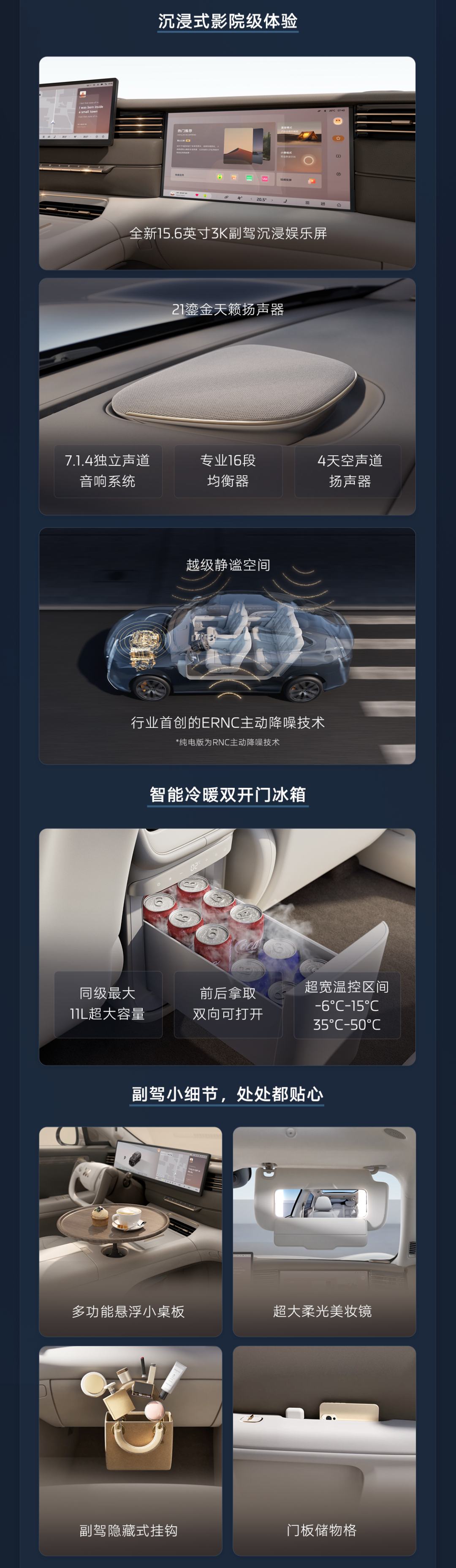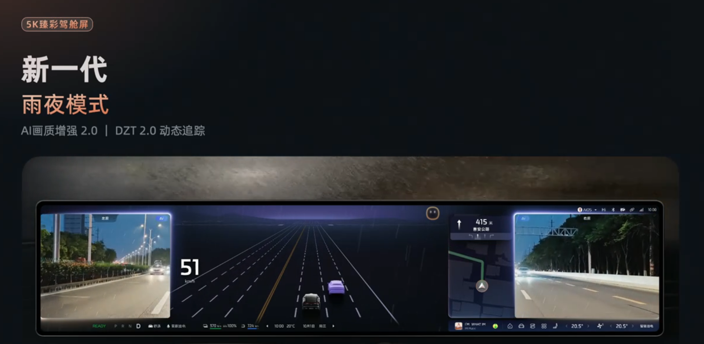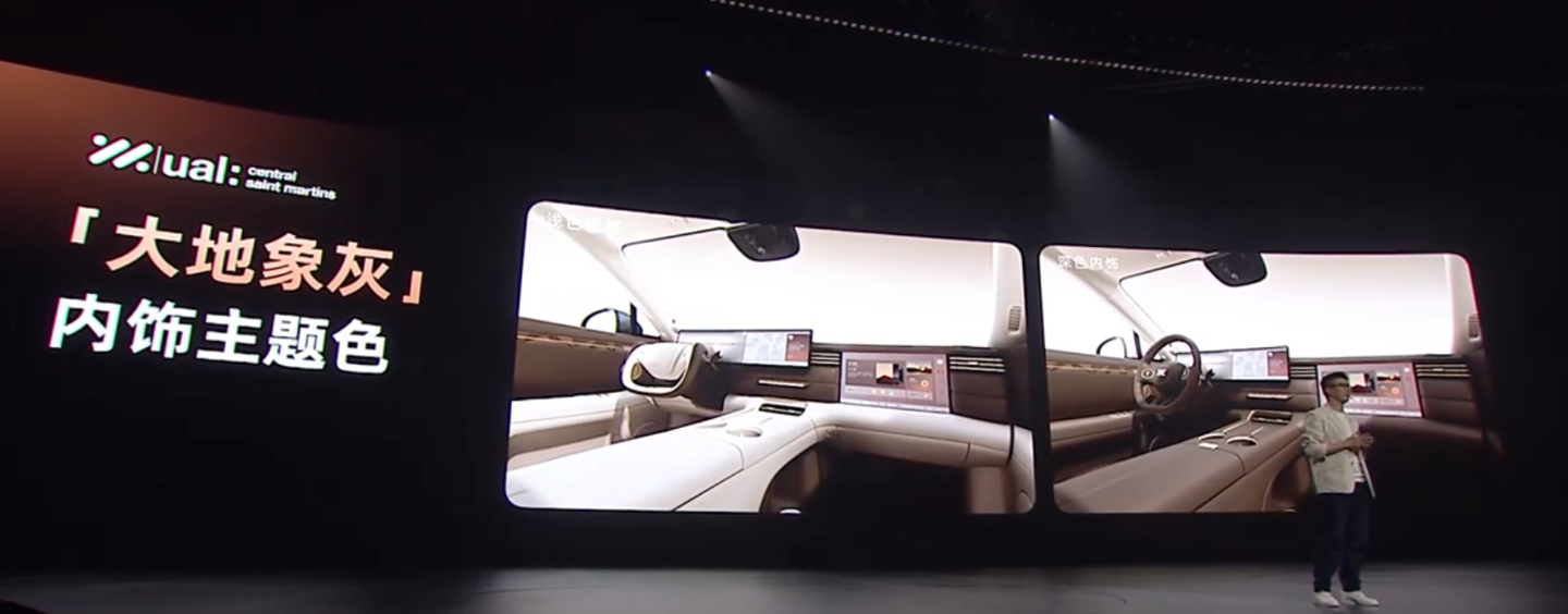 内饰方面,新车可选两款主题色,搭载全新全场景数字座舱,配备旗舰级 MinLED 显示技术,同时还有 27.1 英寸 5K 驾舱屏和 15.6 英寸 3K 副驾娱乐屏。