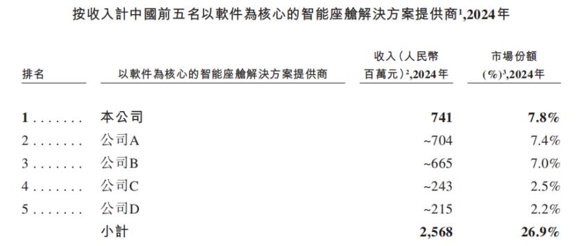 按收入计中国前五名以软件为核心的智能座舱解决方案提供商,来源:招股书
