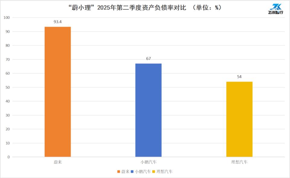 “蔚小理”2025年第二季度资产负债率对比,数据来源于公开数据,飞说智行制图