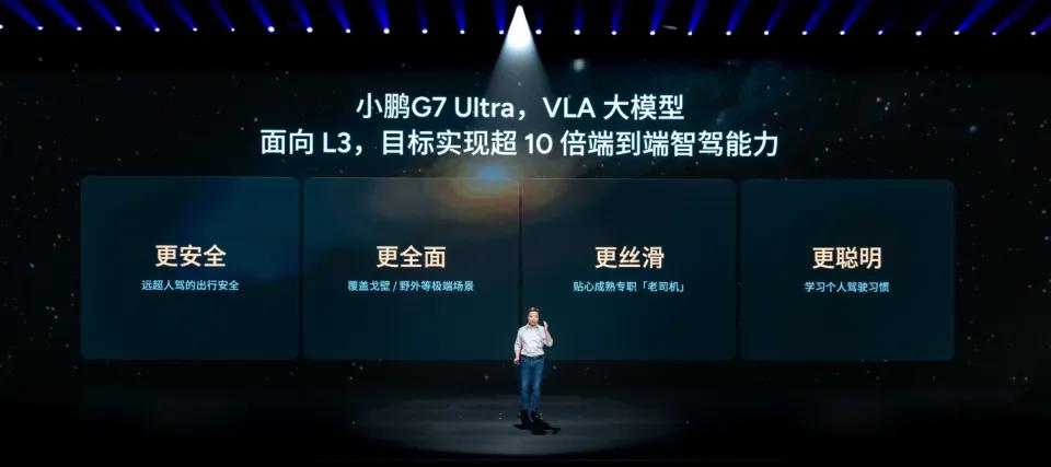 直到小鹏 G7 Ultra 发布会上,小鹏才明确表态,基于 3 颗图灵芯片与双激光雷达,小鹏 G7 Ultra 支持全场景 VLA,包括复杂路口决策、无车位泊车等功能,并在人机共驾模式下可以实现协同控制。