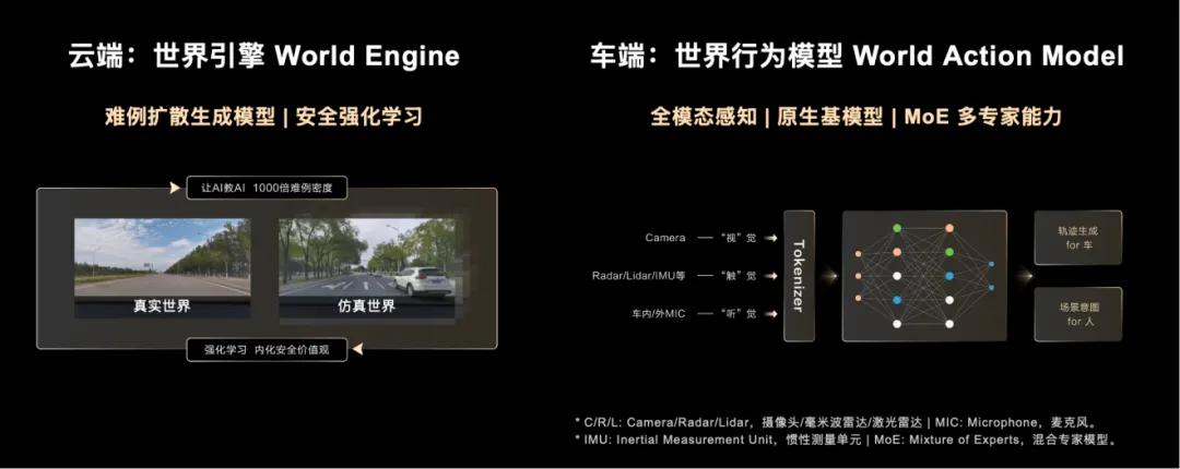 相较之下,华为已经找到了新解法,在华为乾崑 ADS 4 上,打造出 WEWA 世界模型架构,通过端云结合的系统训练,行为模型可以直接控制车辆,时延更低。