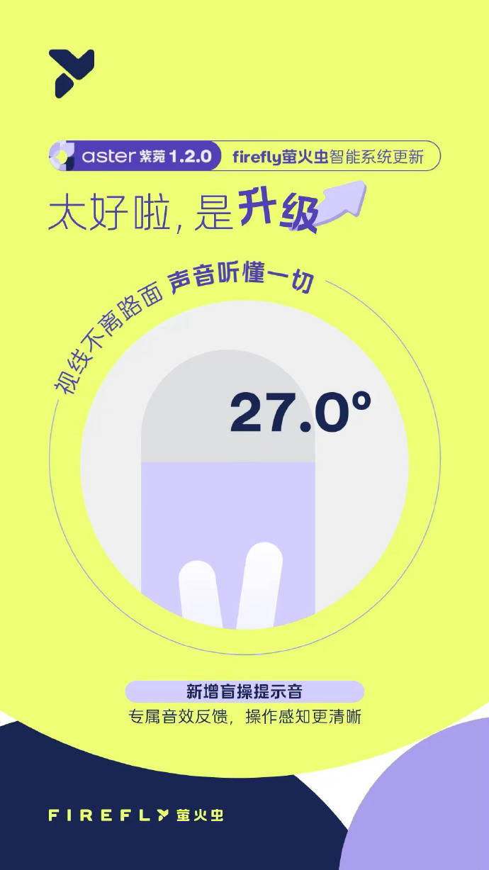 凤凰网科技讯 9月25日,firefly萤火虫汽车官方宣布,其车载智能系统aster紫菀迎来1.2.0版本更新,国庆节前全面上线。