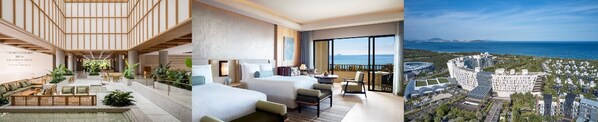从左至右:三亚泰康臻品之选度假酒店;金茂三亚亚龙湾丽思卡尔顿酒店;三亚海棠湾民生威斯汀度假酒店