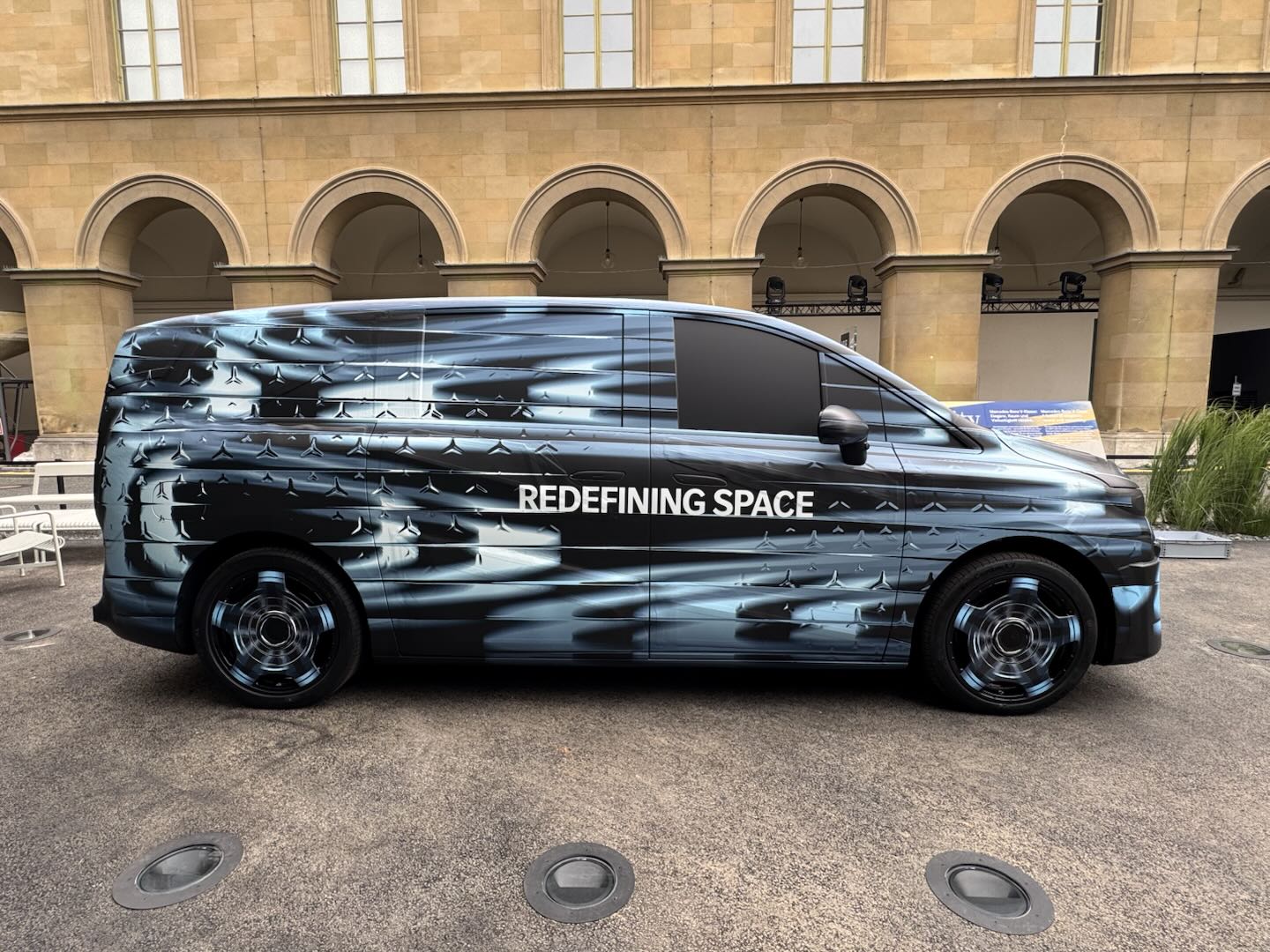 基于此前亮相的伪装原型车来看,奔驰 VLE 保留了 Vision V 概念车的车身轮廓,D 柱区域的侧窗线条延续下滑趋势走向,侧滑门导轨位于后轮拱上方,没有采用与侧窗下缘整合的隐藏式处理。车辆还配备了隐藏式门把手和 22 英寸马牌轮胎。车身贴纸上的“REDEFINING SPACE”字样,预示着车内将拥有可观的乘坐空间。