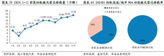 但骨感的现实是,根据《盖世汽车研究院》报道,早在 2024 年 H1,市场上标配高速 NOA 功能的车型里有三分之二前装了激光雷达,标配城市 NOA 功能的更是达到了 100%,完全的统治地位。