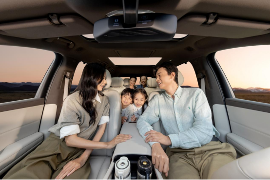 在智能化配置方面,腾势N8L搭载了17.3英寸后排娱乐屏、20扬声器帝瓦雷音响系统以及内置DeepSeek大模型的AI智能助手。其智能驾驶辅助系统为“天神之眼B-辅助驾驶激光版”(DiPilot 300),采用端到端大模型算法,支持覆盖全国多数道路的城市与高速领航辅助驾驶功能。此外,该车还打通了部分智能生态,如与好孩子联名的智能儿童座椅以及内置支付宝小程序实现的车载点单支付功能,进一步提升了出行的便捷性。