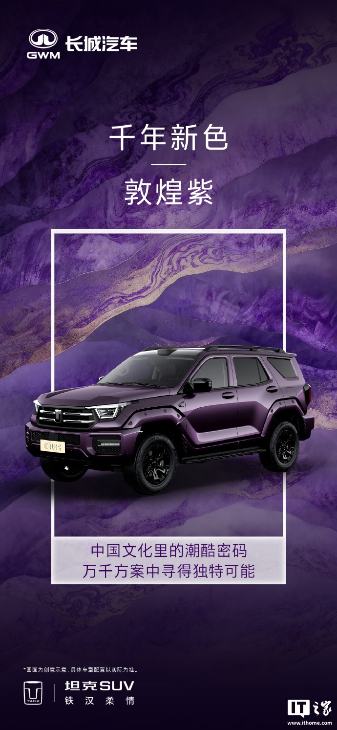 IT之家 9 月 29 日消息,长城全新坦克 400 于 9 月 22 日晚正式亮相,新增“敦煌紫”配色。坦克品牌今日宣布,全国 178 城展车已陆续到店。