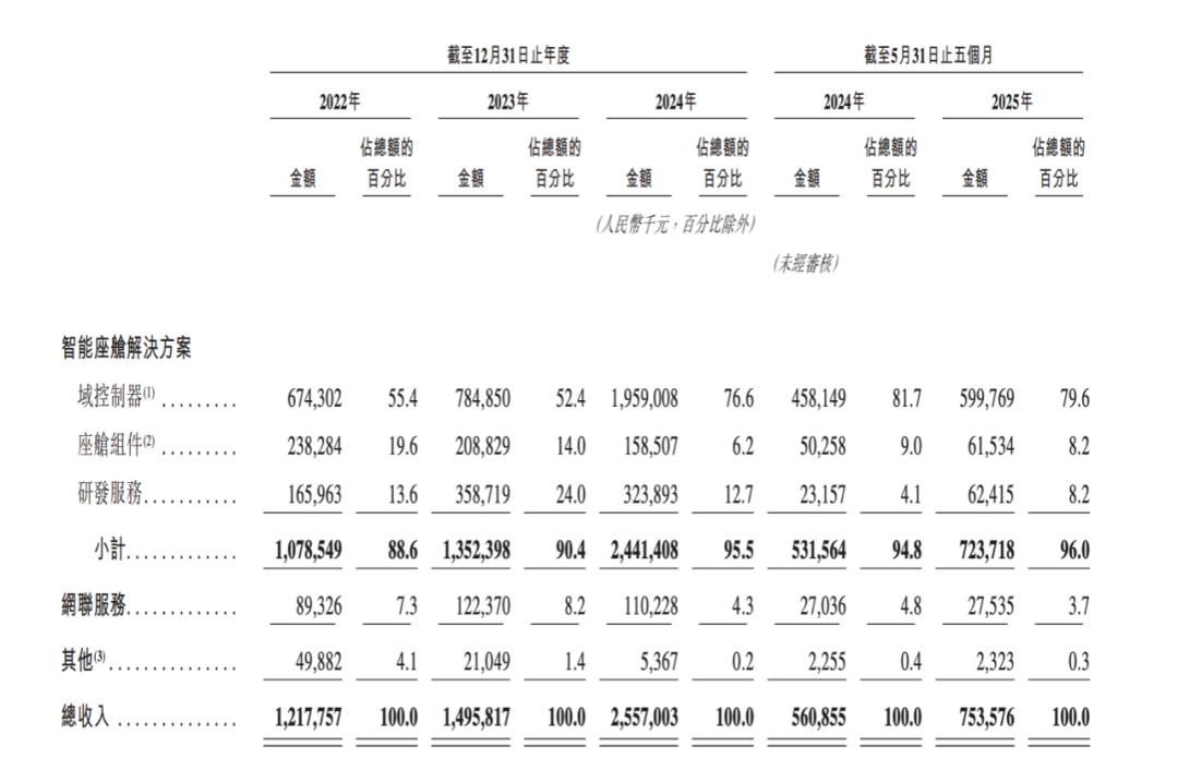 招股书提到,2024年,中国乘用车智能解决方案的市场规模达到人民币2524亿元,占全球市场份额的33.3%,预计2029年将增至人民币5876亿元,占全球市场份额的37.8%,有关增长相当于2024年至2029年18.4%的复合年增长率。