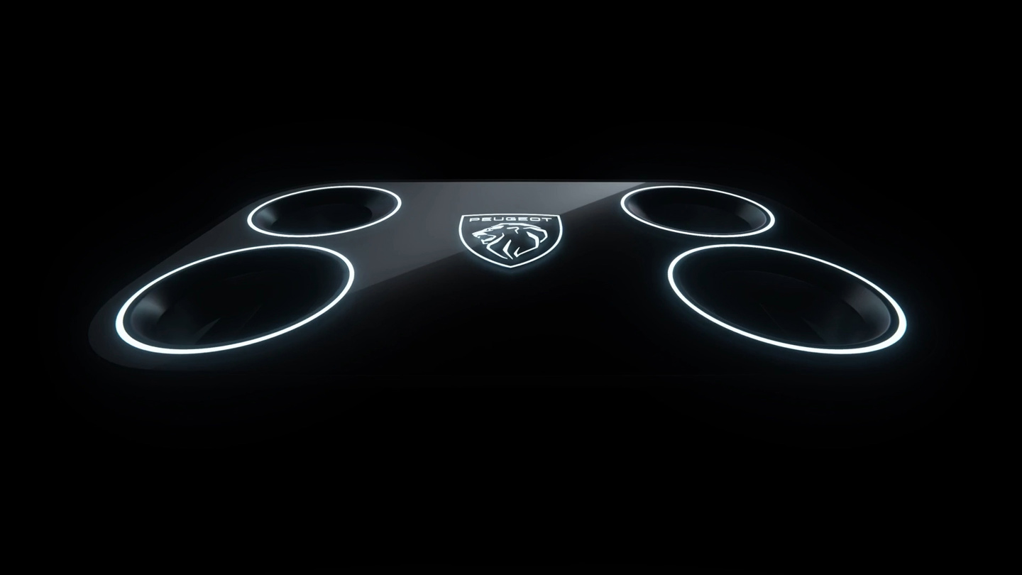 可以看到标致 POLYGON 概念车极富科技创意感,搭载了 HyperSquare 四眼圆角矩形方向盘,还拥有长条形的矩阵灯显带。