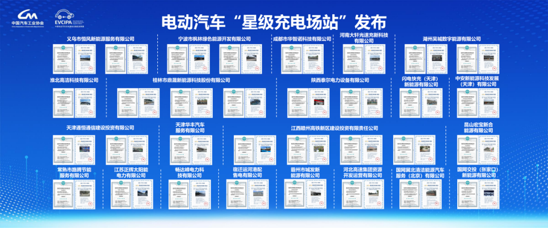 依托新标准,经严格评审,本次大会共发布 70 家充电运营企业的 11 座三星级充电场站、55 座四星级电动汽车充电场站、200 座五星级电动汽车充电场站。