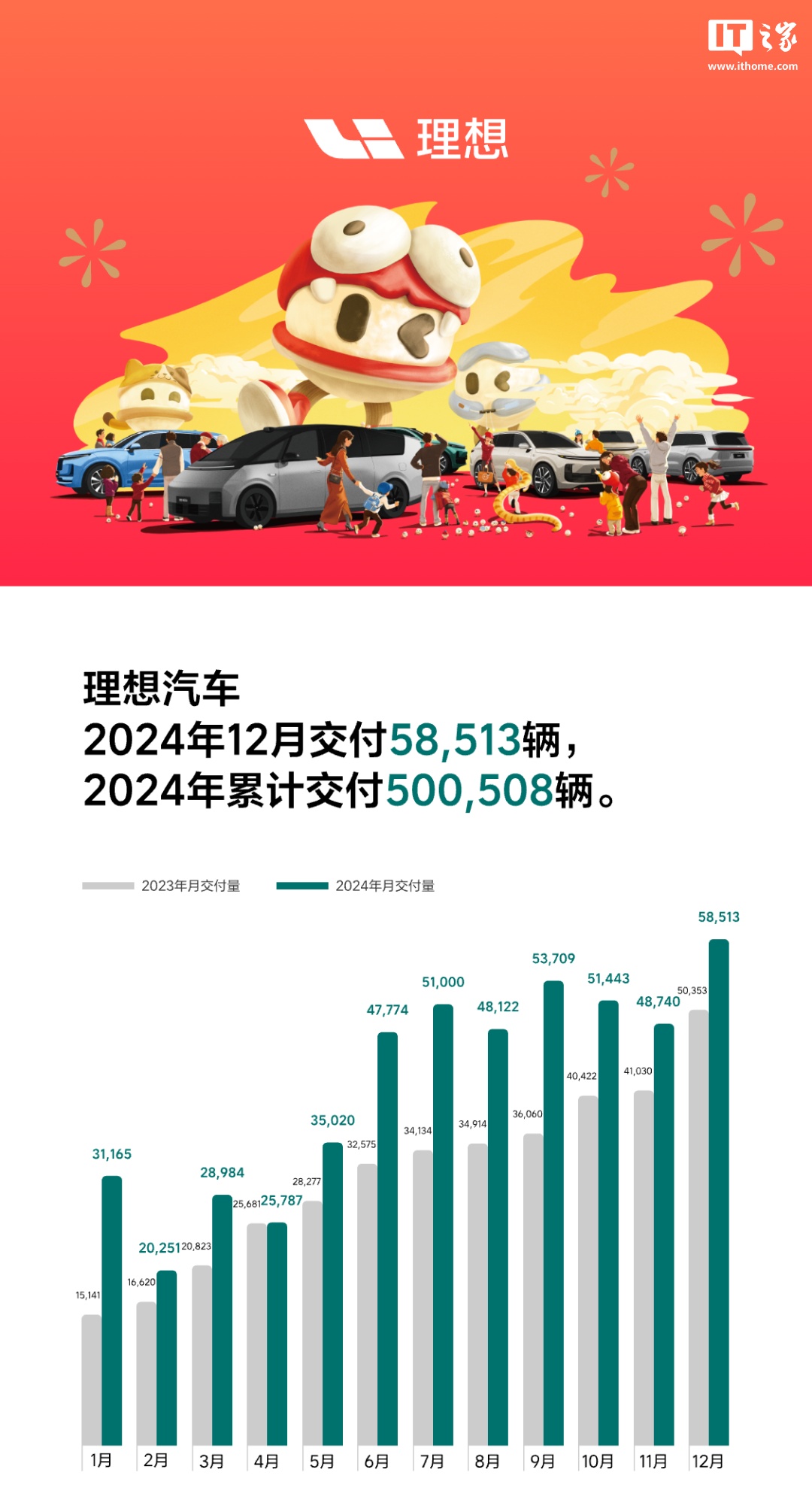 作为参考,IT之家在此汇总三家车企 2024 年交付数据: