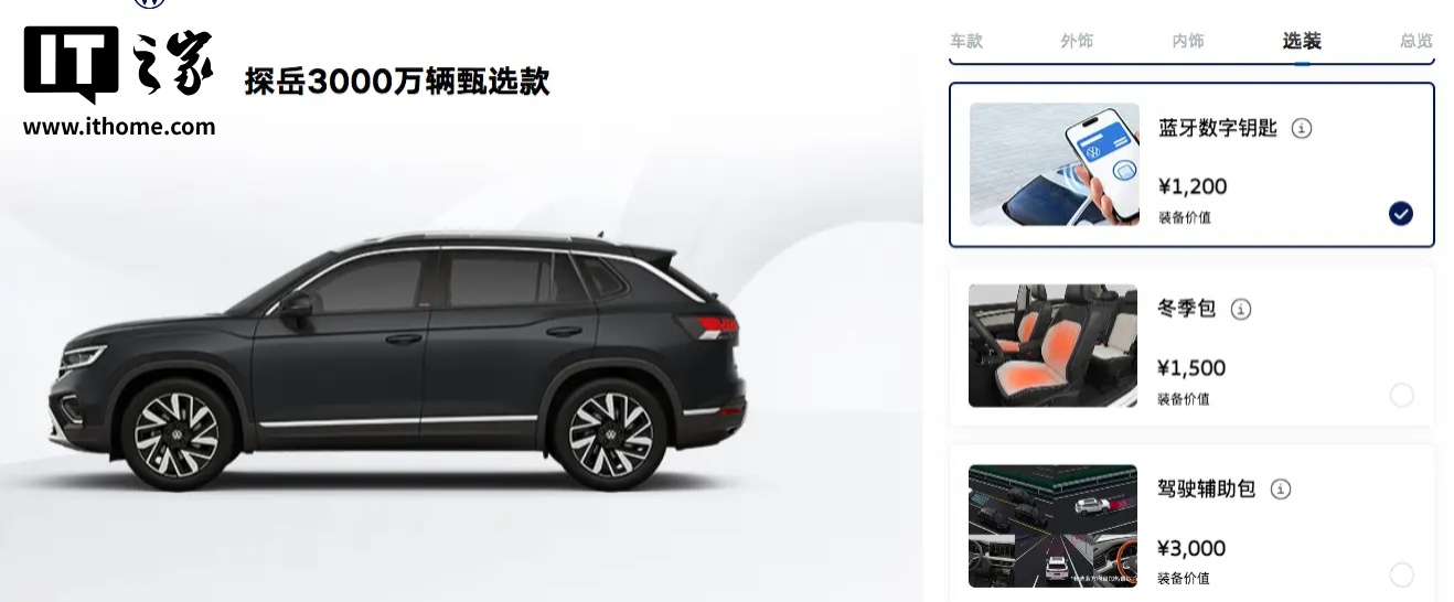 IT之家 10 月 4 日消息,大众探岳 3000 万辆甄选款现已上市,整体外观设计和现款探岳没有很大区别,主打纪念大众全球下线 3000 万辆 SUV,共有 2 款车型,官方指导价 19.89 万元起,与 2025 版探岳众享款起售价相同。