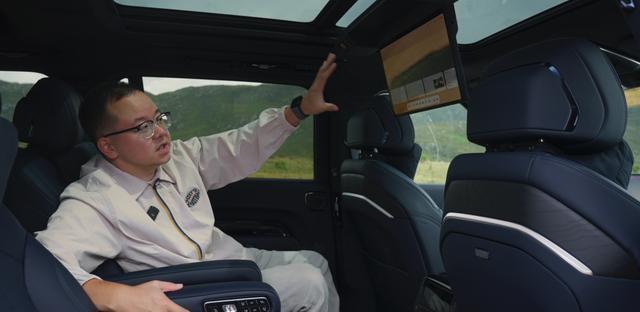 这玩意带来了两个好处,一个是可以在拥有娱乐屏的同时,保留全景天窗,这在其他所有带后排娱乐屏的车上都是做不到的。