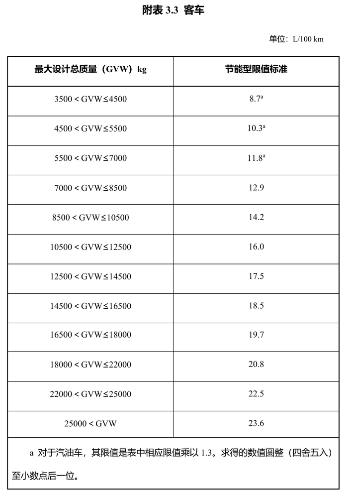 1.节能乘用车综合工况燃料消耗量限值标准