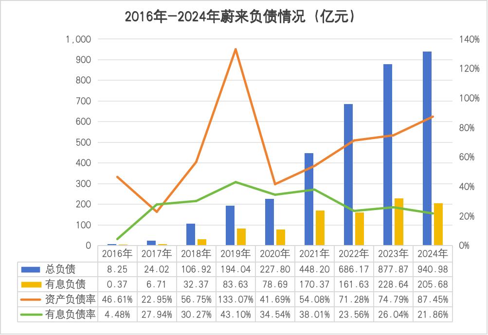 从2016年到2025年Q2,蔚来利息支出经历了两个阶段的攀升。