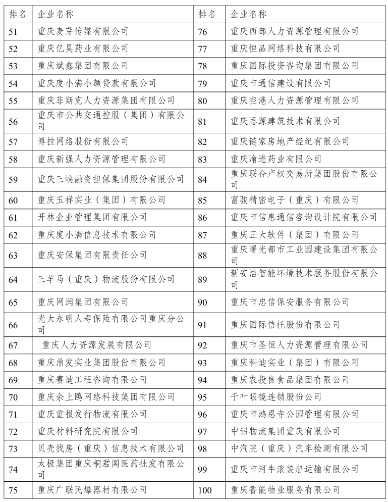 与去年相比,赛力斯、重庆百货、远达环保、民生能源集团、重庆京东方、盛泰光电、哈弗物流、平伟集团、重庆长城汽车、渝欧公司是首次出现在名单中。