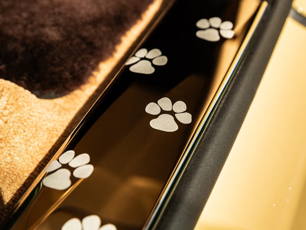 IT之家注意到,在外观设计方面,闪灵“贝利”采用了专属的漆色方案。车身主体颜色被命名为“美丽贝利色”,融合了水晶漆面效果,其灵感来源于贝利耳旁柔软的毛发,呈现出一种独特的光泽与质感。车身上部同样运用了莹彩闪耀的水晶漆面效果,进一步增强了整体的视觉效果。此外,车辆肩部腰线上还精心设计了爪印图案,精准地复刻了贝利的爪印,使车辆外观更具个性化与独特性。