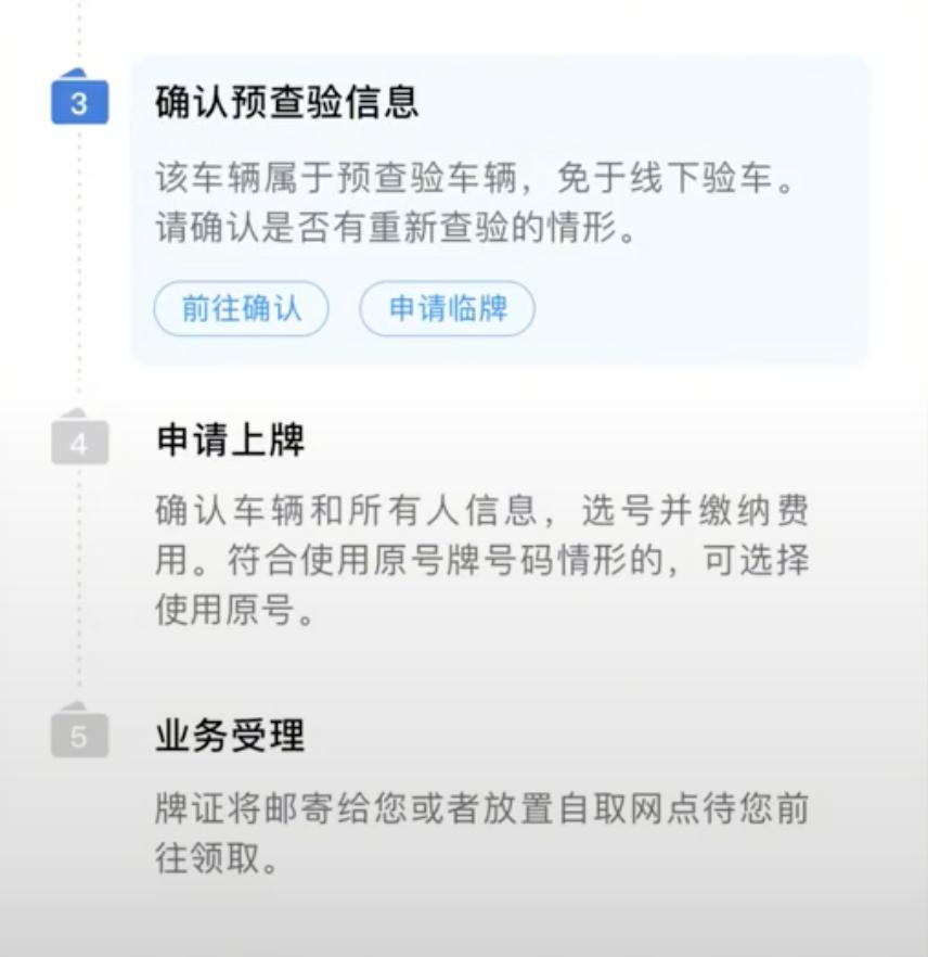 整个环节不用交纸质材料,不需要你出门跑窗口,绝大部分新车也不用再现场验车了,直接免排队搞定,是不是方便多了?