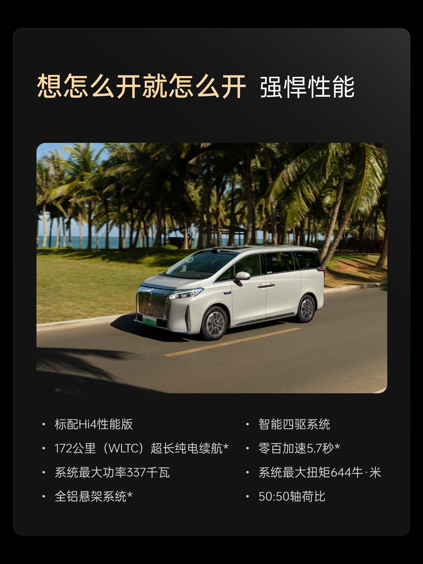 动力方面,新车继续搭载长城汽车 Hi4 性能版智能四驱电混技术,混联 + 4 挡 + 前后轴双电机的创新混动配置,集成了增程、并联、直驱等混动模式,系统综合功率 337 千瓦。