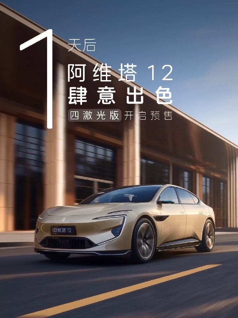 IT之家 10 月 17 日消息,阿维塔官微今天宣布,阿维塔 12 四激光版将于 10 月 18 日(即明日)开启预售。