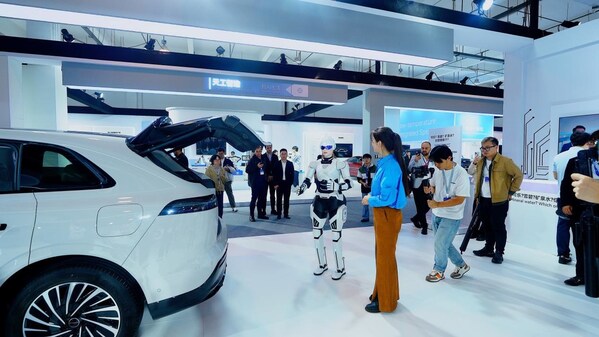 奇瑞墨甲机器人的"车机协同"服务方案吸引了大量观众驻足体验。现场,墨甲机器人"墨茵"独立完成了迎宾引导、车型讲解、全自主开车门、车机协同等完整流程,展示了人形机器人首次主导的无人工购车接待流程,为车企服务模式的智能化升级提供了现实范本。