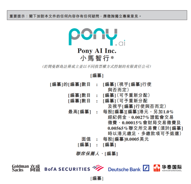 IT之家 10 月 19 日消息,10 月 17 日晚,港交所显示,Pony AI Inc.(简称“小马智行”)已通过港交所聆讯并披露通过聆讯后的资料集,高盛、美银、德意志银行和华泰国际担任联席保荐人。