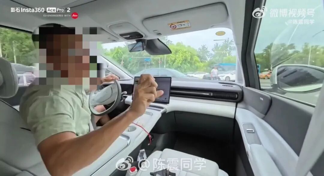 例如,测评智界R7时,他只是将一只手搭在方向盘上方,并未双手把持方向盘。