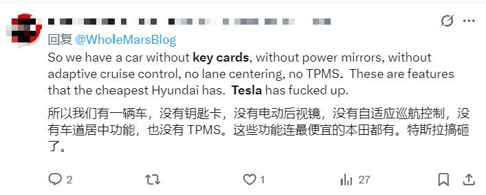 还有人吐槽特斯拉配置减来减去,自己还不如去买一辆丰田: