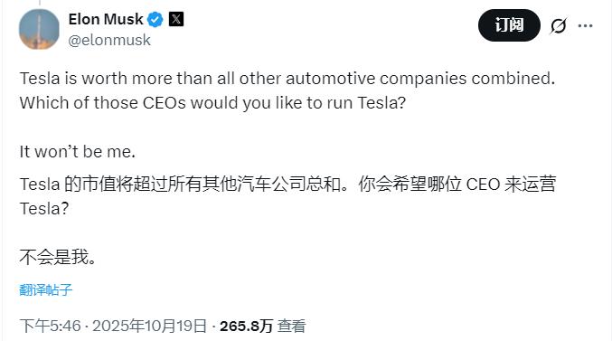 并由此暗示,如果拿不到这笔钱,他就不当特斯拉的CEO了。