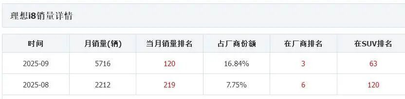 据车主之家数据,理想i8销量8月为2212辆,9月5716辆,虽稳中有升但未达月均1万辆的爆款门槛,而竞品乐道L90持续月销过万,二者形成了鲜明对比。