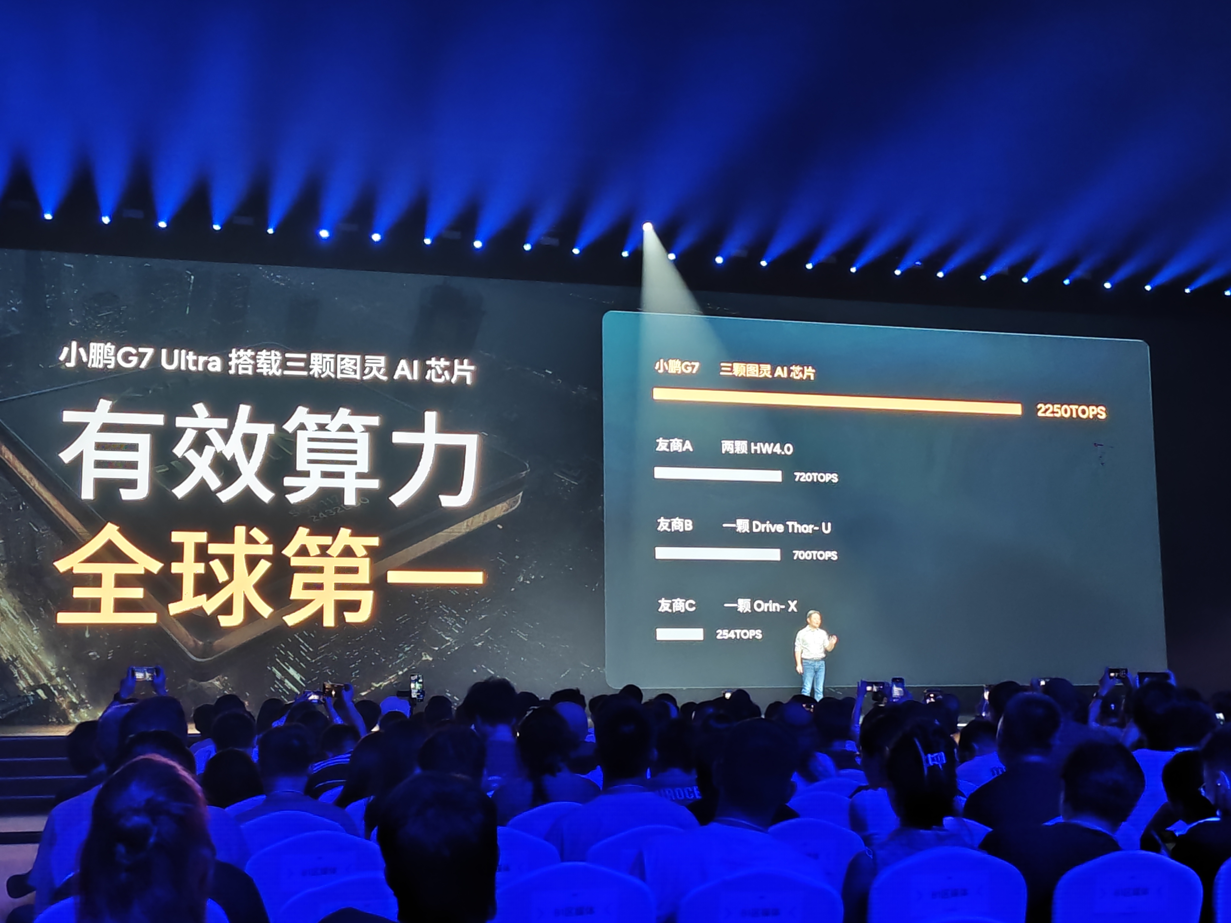 电车通认为小鹏具备领跑潜力,核心依据在于其技术自研实力。何小鹏曾宣布,小鹏 G7 为全球首款 L3 级 AI 汽车,其搭载的三颗自研图灵 AI 芯片,总算力达 2250TOPS,位居全球第一。显然,小鹏舍得投入如此强悍的算力储备,不仅是为满足当前全场景辅助驾驶需求,更在为向更高阶自动驾驶进阶铺路。