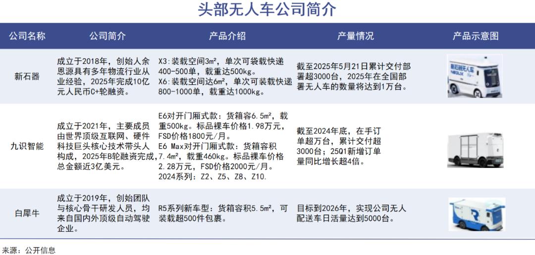 韵达也在财报中表示,企业今年上半年投入了超过500辆无人车,应用于末端配送场景扩展至医疗物资和生鲜冷链等高附加值领域。其无人车有83%来自九识,17%来自新石器。