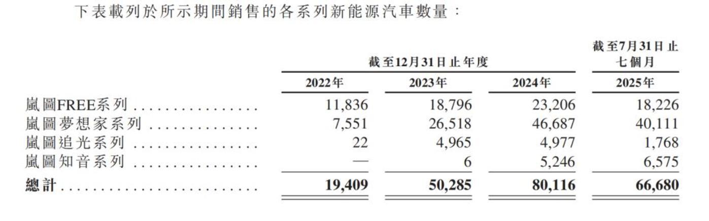 招股书数据印证,2025年1–7月,岚图累计销售66680辆车,其中,岚图梦想家贡献40111辆,占比高达60.15%。