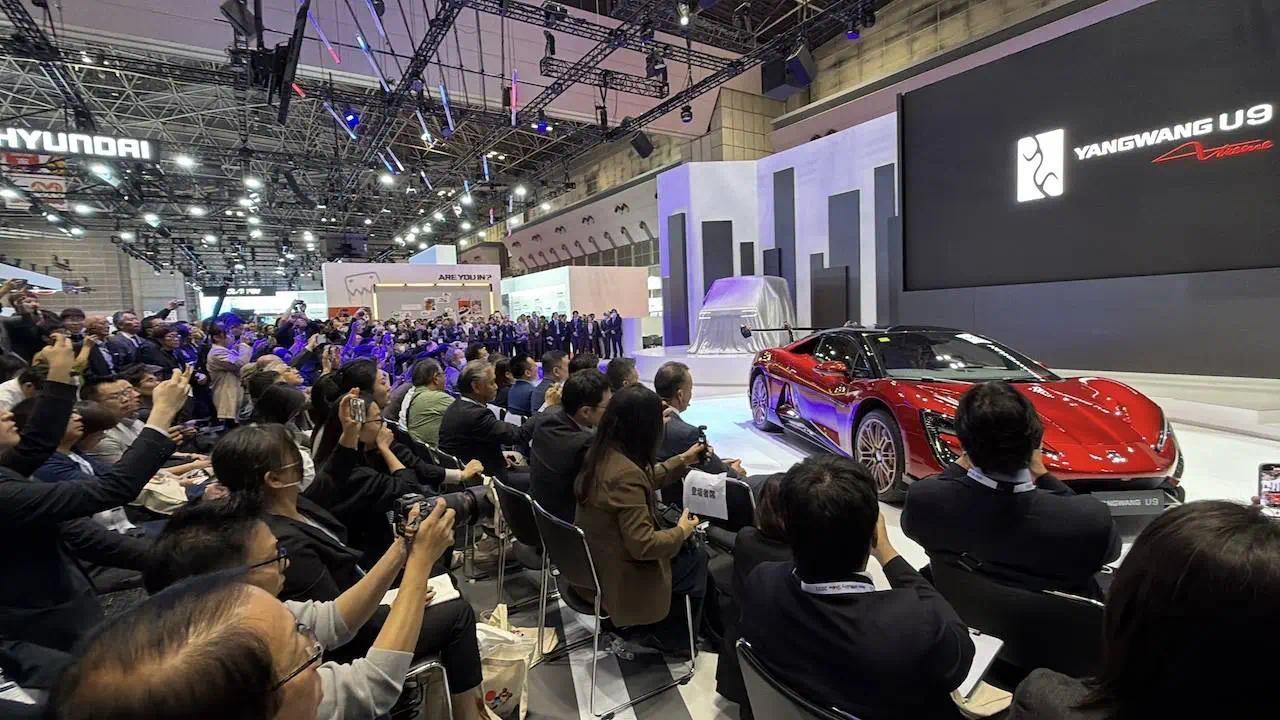 构成攻势上钳的, 则是那台被围得水泄不通的超级跑车——仰望U9。新车亮相时直接用云辇悬架跳了一段“舞”,给现场的观众留下了深刻印象。