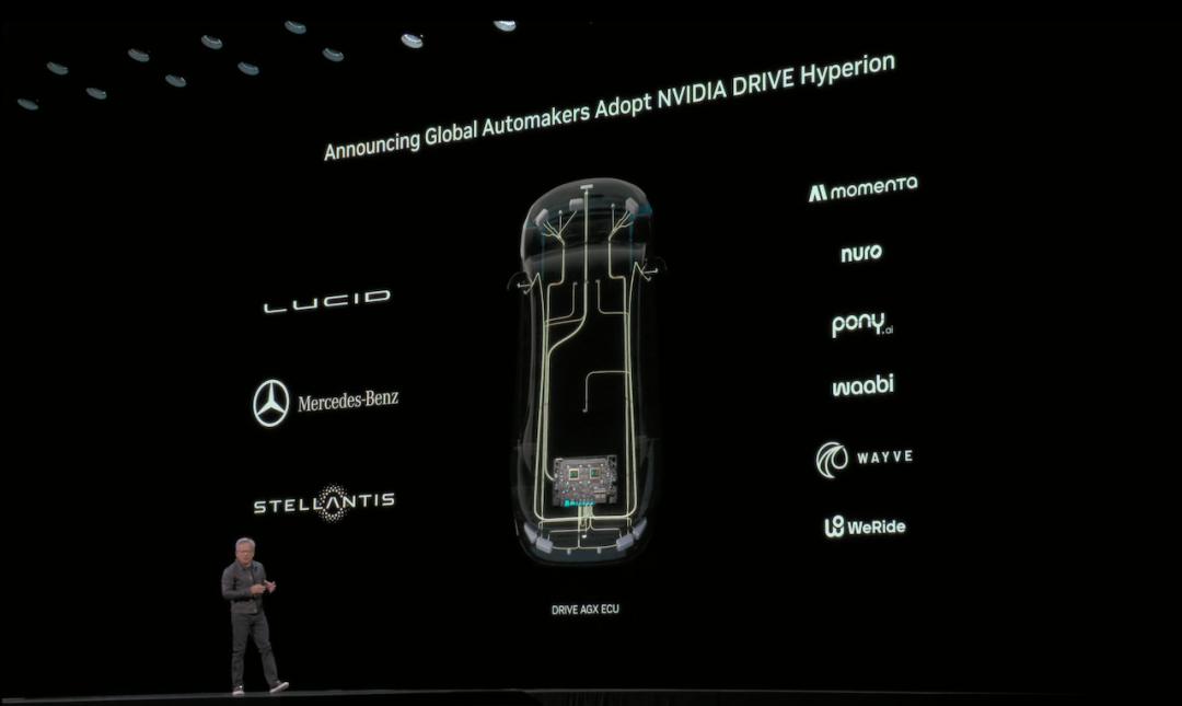 在运营侧,在GTC大会上,英伟达宣布与Stellantis、Lucid Group、梅赛德斯-奔驰和鸿海(富士康母公司)建立新的合作,以探索联合开发和未来在全球范围内部署用于自动驾驶专车服务业务的L4级(无人驾驶)自动驾驶车辆。