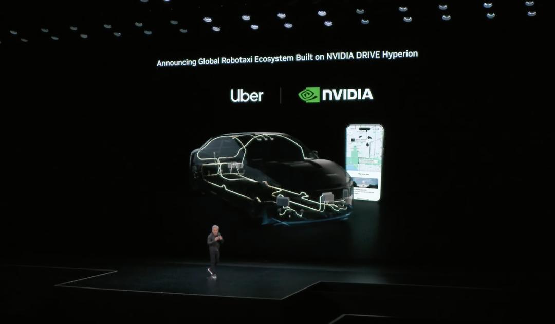 Uber将采用NVIDIA DRIVE AGX Hyperion 10自动驾驶开发平台,计划从2027年起扩大将其全球自动驾驶汽车数量增加到10万辆,并由基于英伟达Cosmos平台构建的联合AI数据工厂提供支持,这些合作伙伴包括 Avride、May Mobility、Momenta、Nuro、小马智行、Wayve 和文远知行。