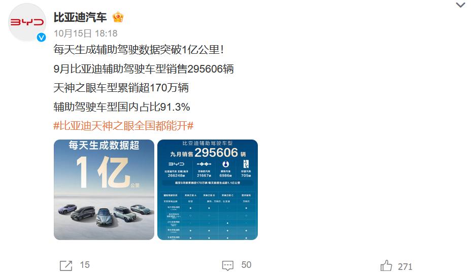 智能化方面,喊出“智驾平权”以来,比亚迪接连推出”天神之眼”辅助驾驶系统、DiLink智能网联系统、智电融合的璇玑架构……到9月,比亚迪已将辅助驾驶渗透率提高到了91.3%。