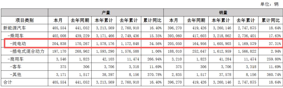 再看乘用车交付结构,前三季度纯电车型累计销量为160.6万辆,同比大涨37.3%,占总销量的49.3%,纯电交付量已经连续四个季度超过了特斯拉。