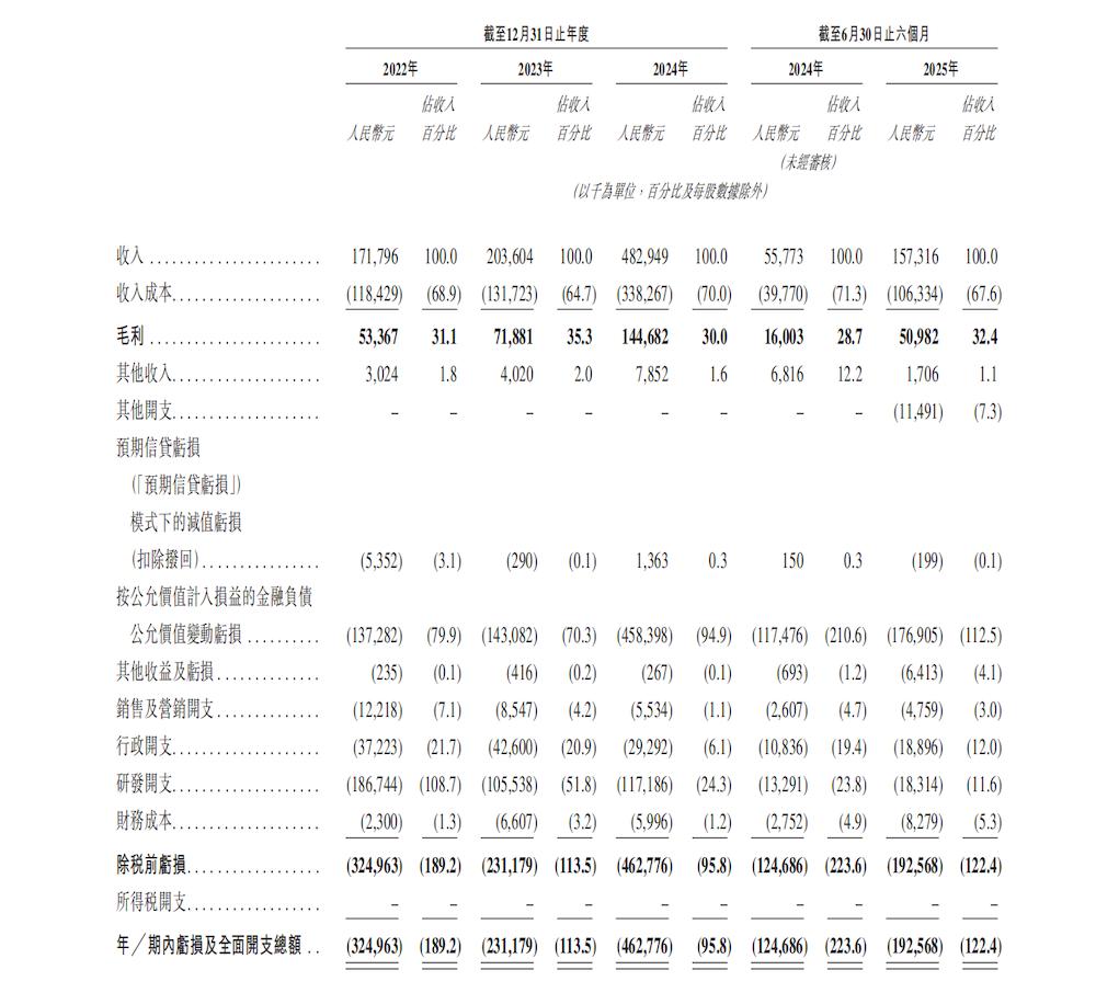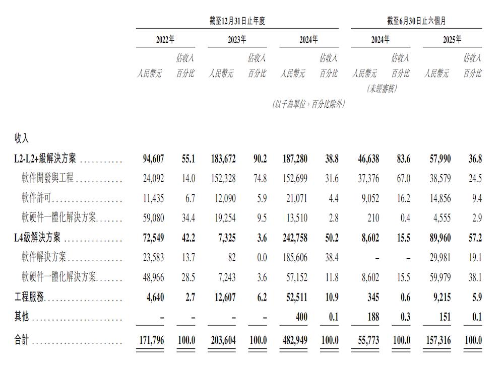 从半年数据来看,天瞳威视的收入从2024年上半年的0.56亿元,增长至2025年同期的1.57亿元,同比增长182.1%。这一增长主要归因于L4级业务的快速扩张,尤其是2025年上半年单价较高的软硬件一体化解决方案交付量显著增加。
