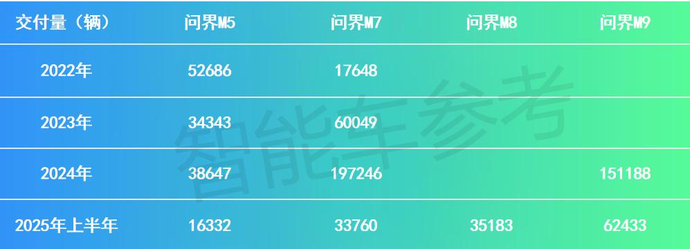 问界M5,除了2022年8月首次月销突破1万辆后,销量始终平淡;问界M7,上市后的销量也不突出。